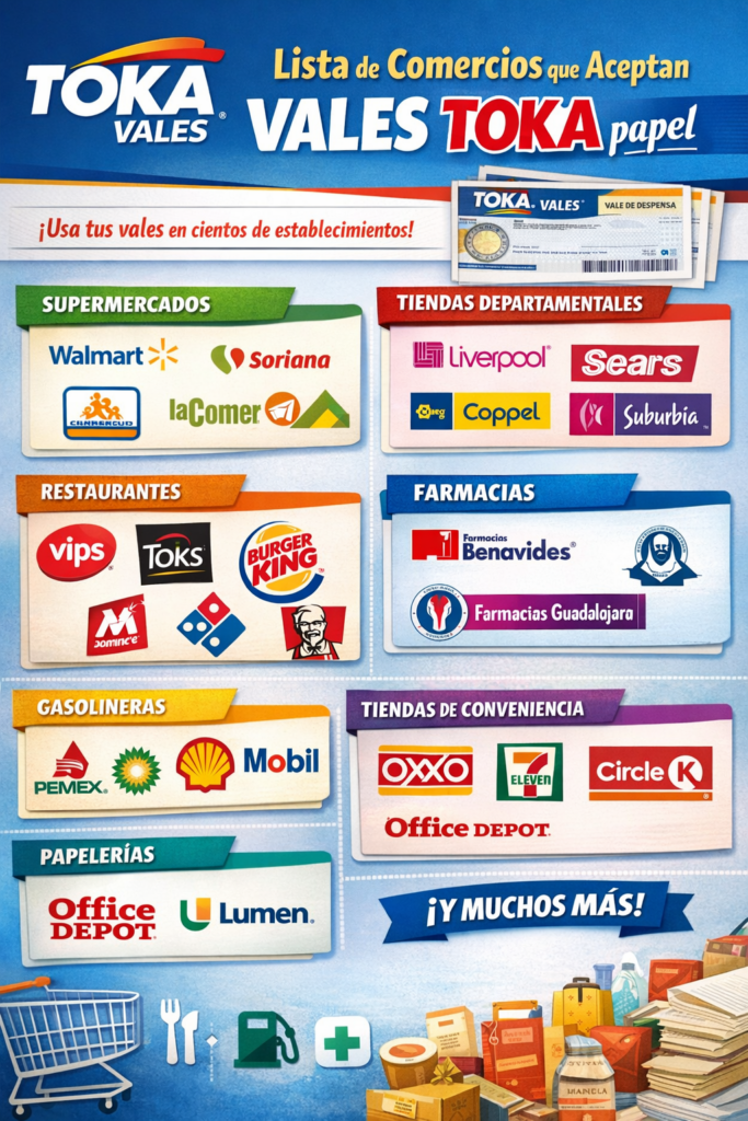 Para utilizar tus vales Toka, tanto papel como tarjeta, debes acudir a cientos de comercios afiliados al programa desde supermercados hasta restaurantes y farmacias en México. A continuación se presenta una guía actualizada para ayudarte: